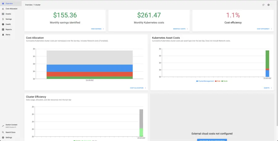 ブラウザでURLを開いてKubecostにアクセスします: